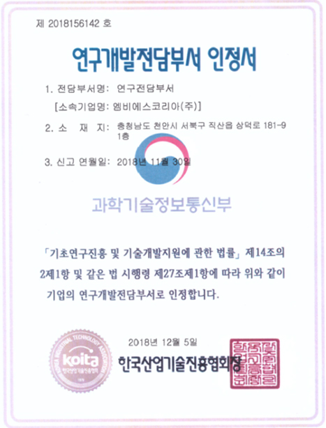 연구개발전담부서 인정서